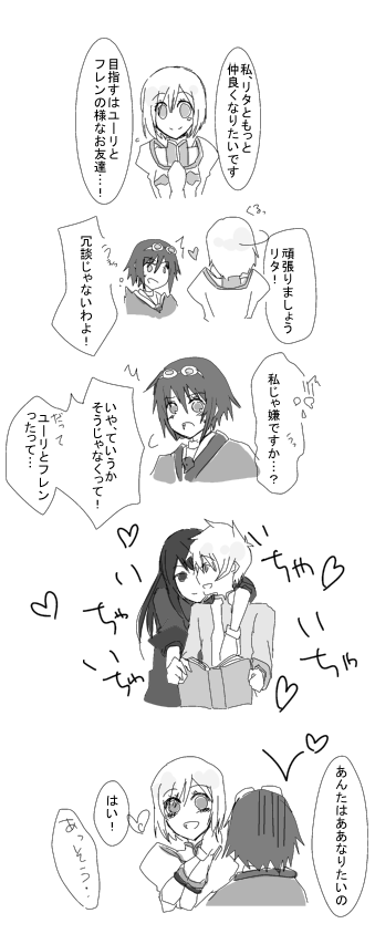 ナチュラルにくっついてベタベタしてるユリフレが理想 PS3版が心配です。パーティーの精神的な意味で。 ↓でおまけマンガ エステルは純粋な意味でリタと仲良くなりたいんですよ! ただ近くにいる仲が良い見本がちょっとアレなだけで。